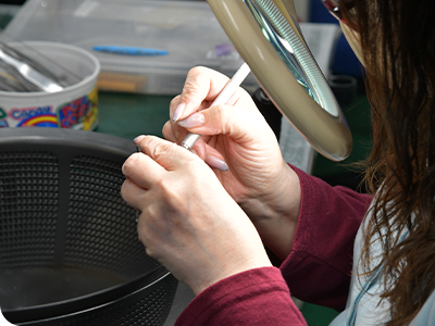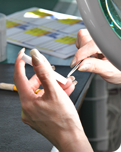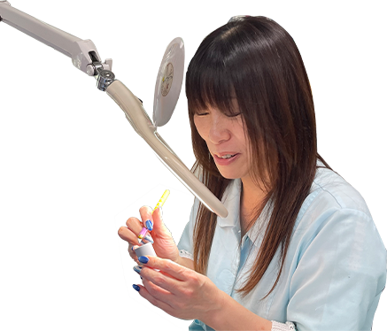 加工が終わった製品の“バリ(余分な部分)”を取り除き、キレイに仕上げるお仕事です。小さな部品を手作業で仕上げるので、集中力や丁寧さが活かせます。