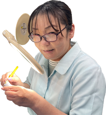 さまざまな品物のバリ取りに携わることができる点がとても楽しいです。一つ一つの作業が異なるので、飽きることなくやりがいを感じながら取り組んでいます!