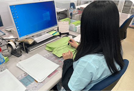 受発注や納期の管理、進捗チェック、出荷準備など、ものづくりの流れを支えるお仕事です。