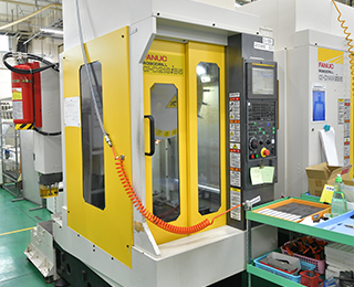 マシニング加工とは、マシニングセンタ(MC)を用いた数値制御(NC)によるフライス加工のことです。フライス加工、穴あけ、ねじ切りなど、さまざまな切削加工が出来、四角い加工やNC旋盤で加工した後加工を行っています。
